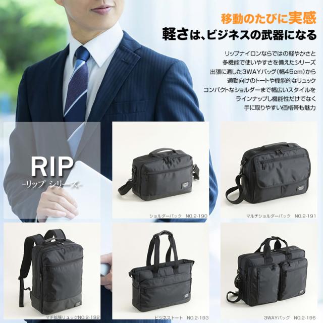 軽量で高耐久な210Dリップナイロンを使用したRIPシリーズの拡張型リュック。