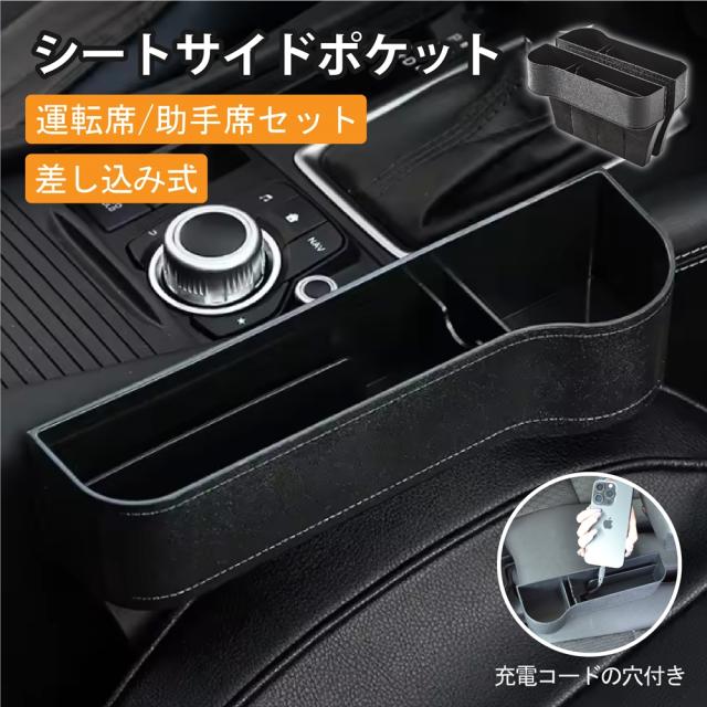 【運転席+助手席セット】車用 サイド収納ボックス 車 シート 隙間 収納 シートサイド 収納ボックス カーシート 隙間収納 ボックスポケット 落下防止 ポケット シート隙間 小物収納 車載 ドリンクホルダー カップホルダー セット販売 差し込みタイプ 車種汎用