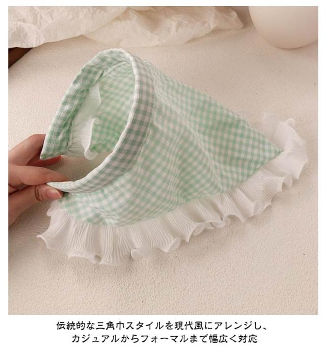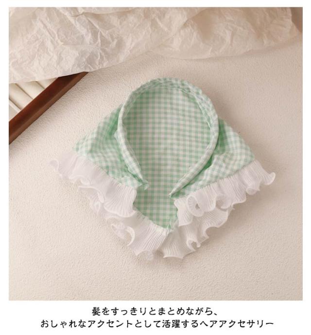 カチューシャ 春 バブーシュカ 2枚セット チェック柄 2枚セット ヘアアレンジ かわいい 三角巾 レディース シアー 夏 可愛い ヘアバンド バンダナ 帽子 小顔効果 レース チェック ヘアターバンヘアアクセサリー おしゃれ 無地