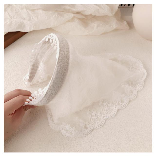 チェック柄 2枚セット 可愛い チェック カチューシャ 透け感 2枚セット かわいい 三角巾 レース バブーシュカ 夏 ヘアアレンジ ヘアバンド バンダナ 帽子 小顔効果 シアー レディース ヘアターバンヘアアクセサリー おしゃれ 無地