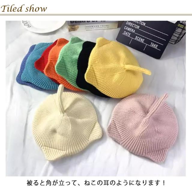 | 猫耳ニットベレー帽 猫耳のデザインがかわいすぎるっ!かぶるだけでコーデのワンポイントになるニットハット♪ 優しい手触りで、肌に触れてもチクチクを感じにくい素材です。 被ると角が立って、ねこの耳のようになります! | |