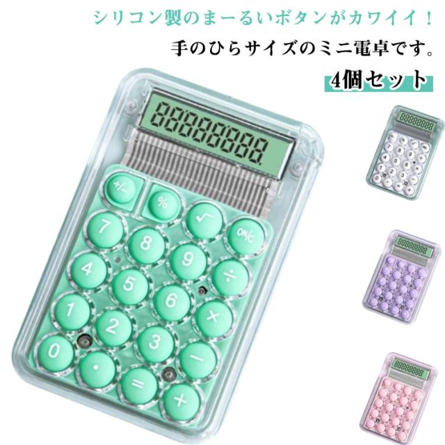 電卓 卓上 筆箱 ミニ 入る 4個セット おしゃれ 文具 8桁 かわいい 計算機 事務用品 記念品 入学 プレゼント 参加賞 可愛い ミニ電卓 4個セット 会社 学校