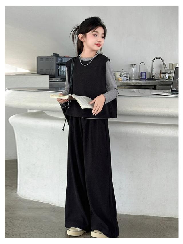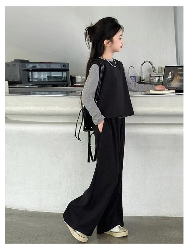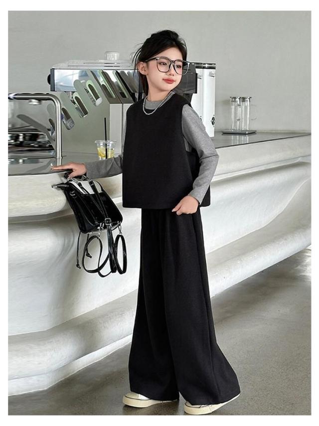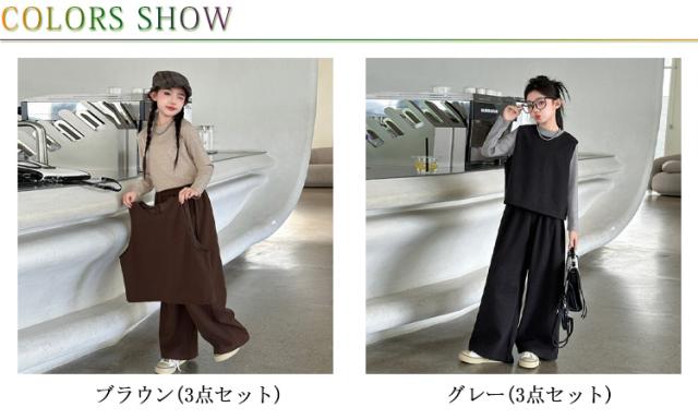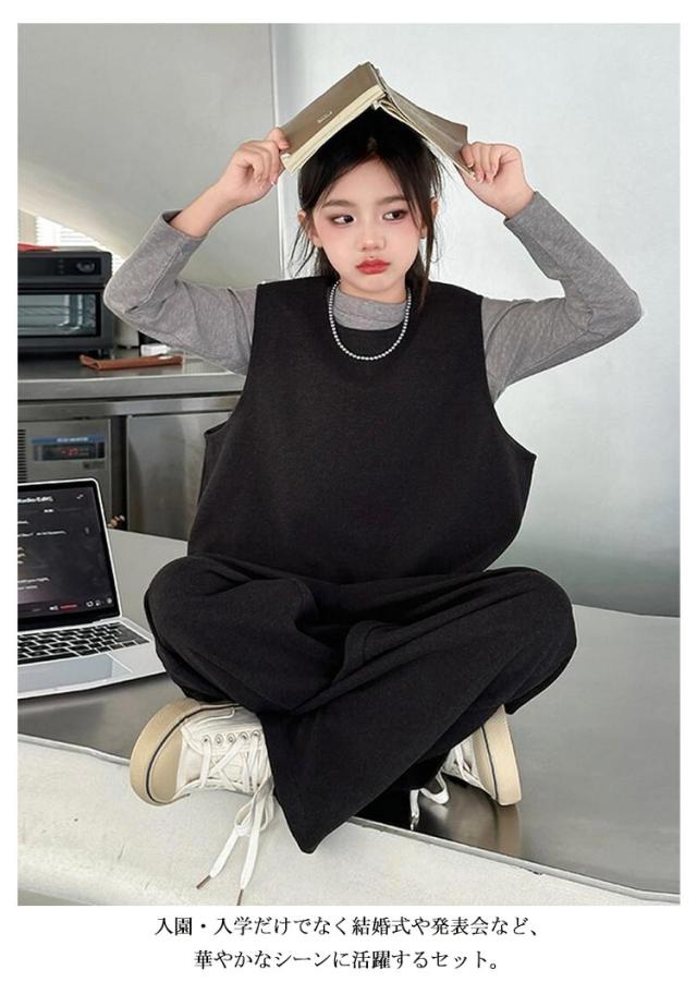 卒業式 卒業式 秋 パンツスーツ 女の子 ジュニア ワイドパンツ 冬 長袖 トップス 無地 ロングパンツ 厚手 小学生 中学生 高校生 子供服 おしゃれ セットアップ インナー 3点セット ベスト 卒服 卒業式 入学式 結婚式 発表会 七五三