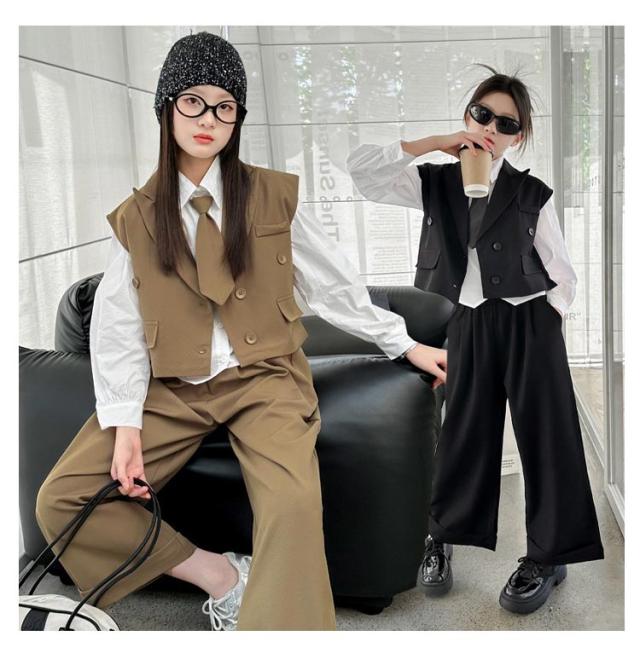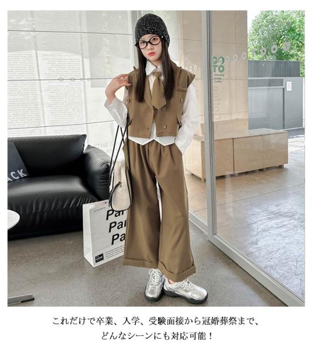 3点セット パンツスーツ 秋物 長袖シャツ 女の子 パンツ フォーマル 小学生 ベスト 卒業式 子供服 ネクタイ付き/無し ジュニアスーツ 結婚式 ピアノ発表会 イベント 洋服