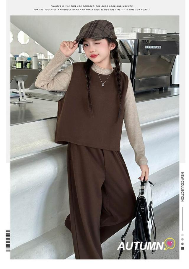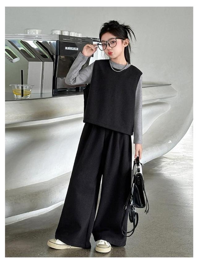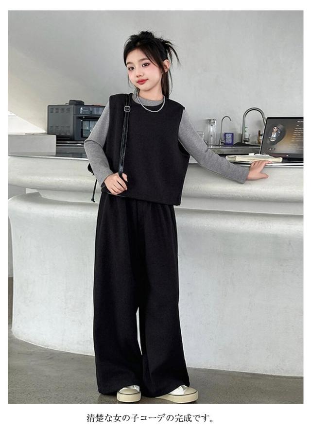 卒業式 ロングパンツ 入学式 小学生 おしゃれ ジュニア トップス 冬 子供服 インナー ベスト パンツスーツ 厚手 無地 中学生 高校生 3点セット 女の子 セットアップ 長袖 ベスト ワイドパンツ 卒服 卒業式 卒業式 結婚式 発表会 七五三