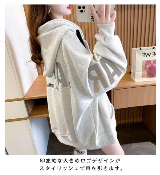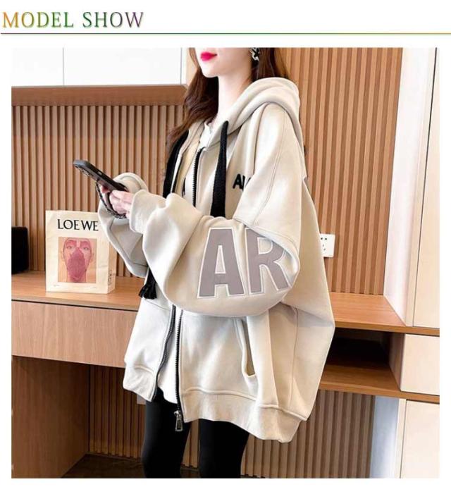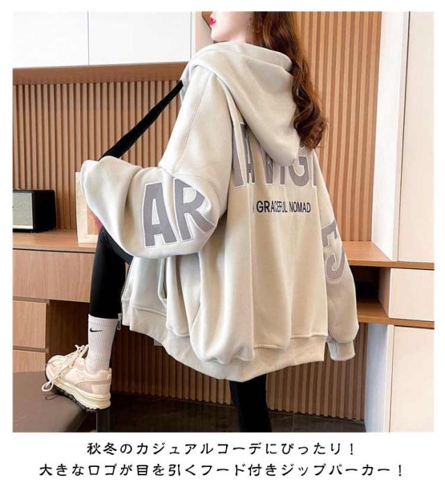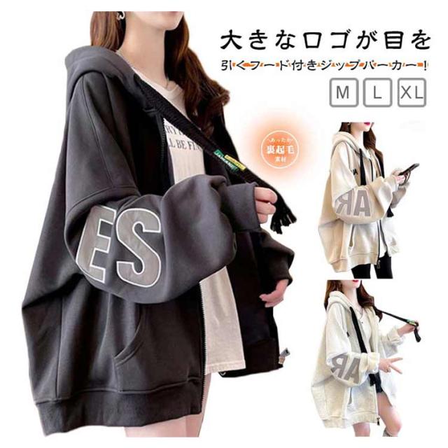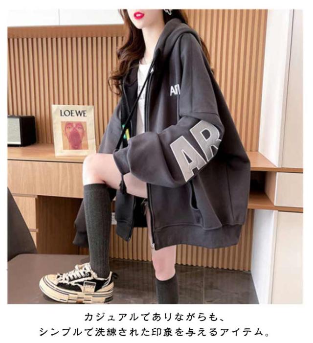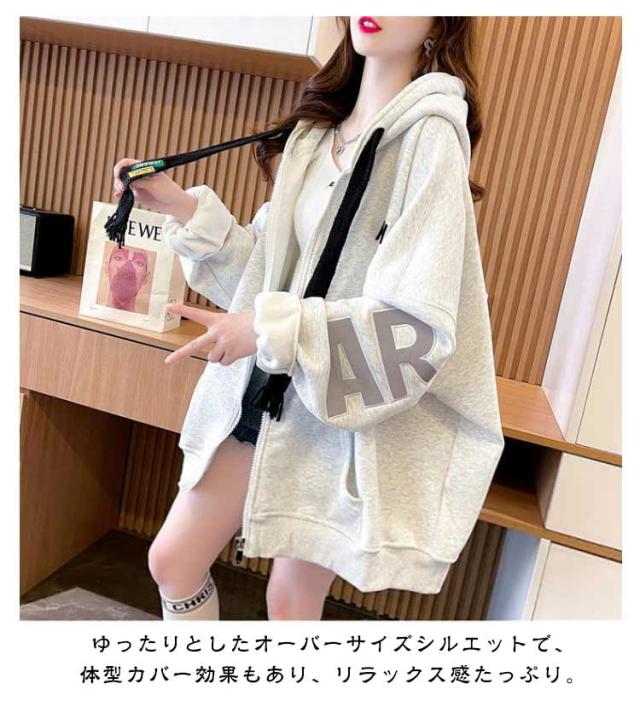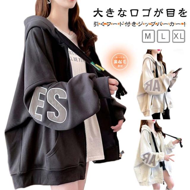 長袖 フロントジップ ジャケット ブルゾン フード オーバーサイズ オーバーサイズ 薄手 冬 春 長袖アウター 秋 裏起毛 ゆったり スウェット 体型カバー カジュアル シンプル トップス 韓国ファッション