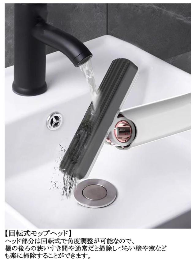 | 乾湿両用 手洗い不要 万能スポンジモップ 手洗い不要でサッと使える 【乾湿両用】 床や棚のホコリ取り、シンクやお風呂の水拭き、キッチンの油汚れなど幅広く使用できます。 【回転式モップヘッド】 ヘッド部分は回転式で角度調整が可能なので、棚の後ろの狭いすき間や通常だと掃除しづらい壁や窓なども楽に掃除することができます。 【高性能スポンジ】 吸水力の優れたスポンジでサッと水を拭き取り、細かい溝構造で汚れやゴミをしっかりキャッチします。 | |