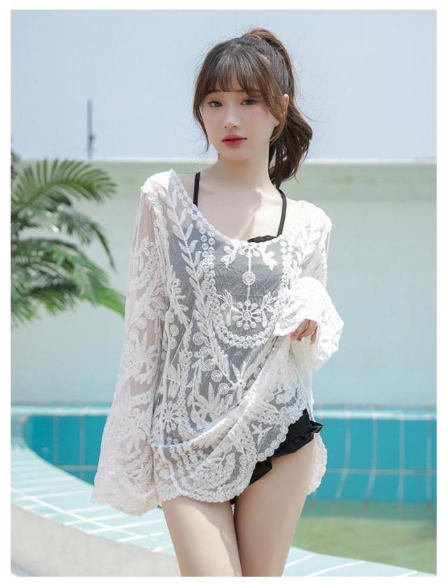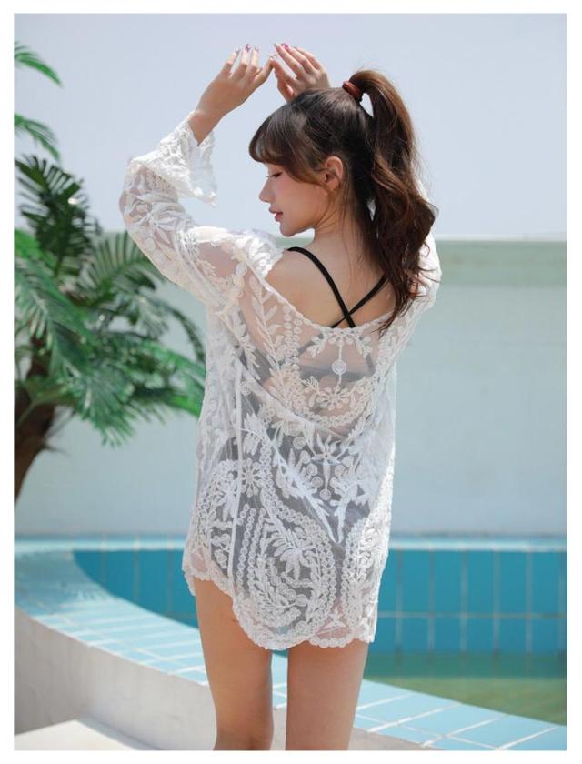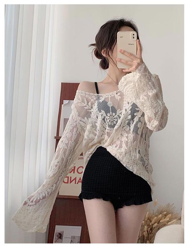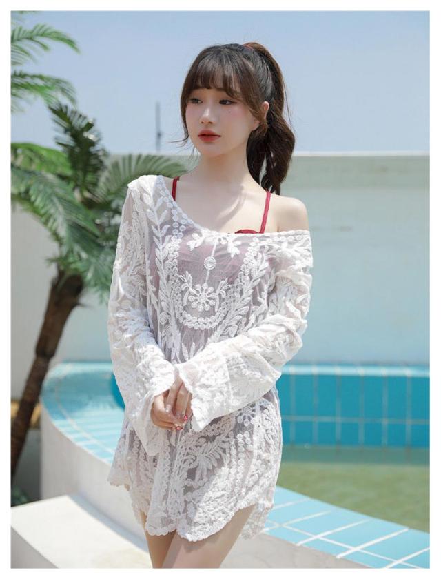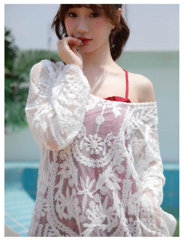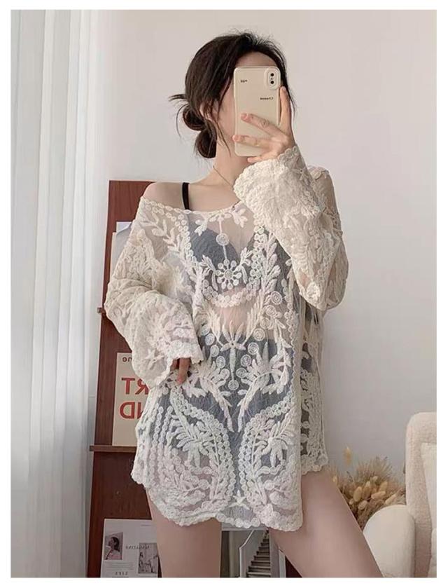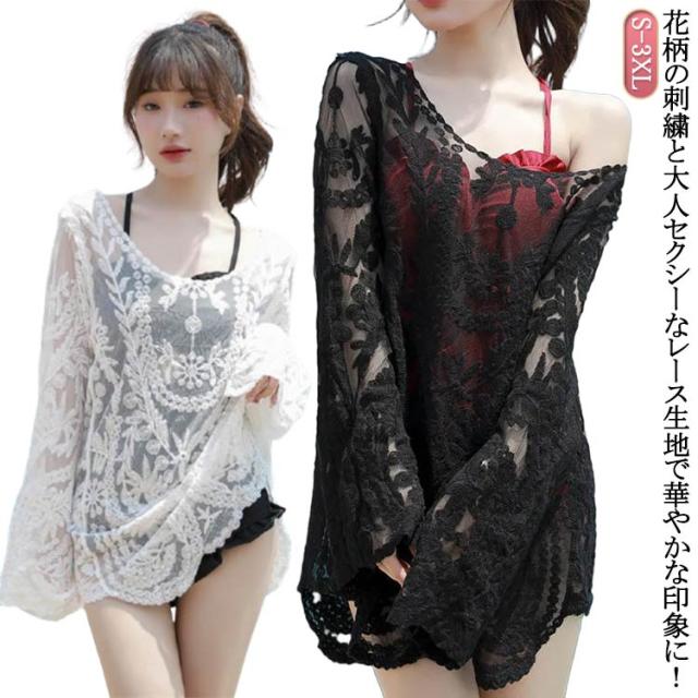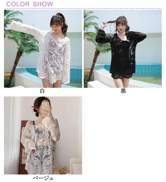 ガウン カーディガン クロシェ風 マキシ丈 レディース ロングカーデ レース 水着の上から ビーチファッション 透け サマーカーデ 白 黒 ベージュ ホワイト ブラック
