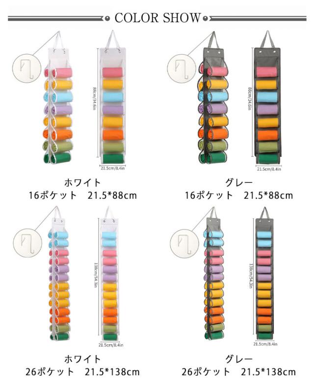 | サイズについての説明 | 16ポケット 21.5*88cm 26ポケット 21.5*138cm ※サイズ表の実寸法は商品によって1-3cm程度の誤差がある場合がございます。 |