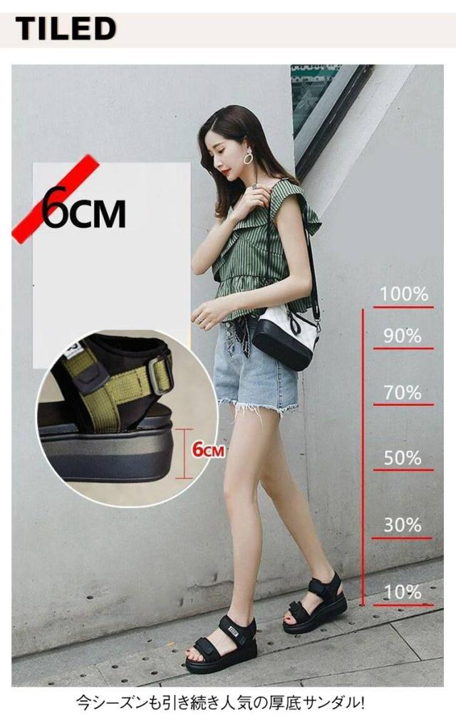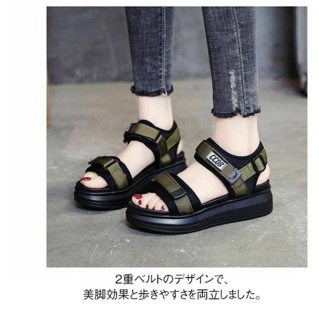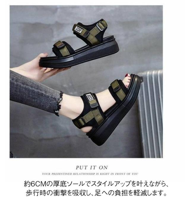 疲れない スポサン 身長アップ ビーチ コンフォートサンダル ベルクロ コンフォート 厚底サンダル フラット 軽量 歩きやすい 軽い 厚底 靴 6cmヒール シューズ レディース スポーツサンダル アウトドア 旅行 美脚 大きいサイズ きれいめ