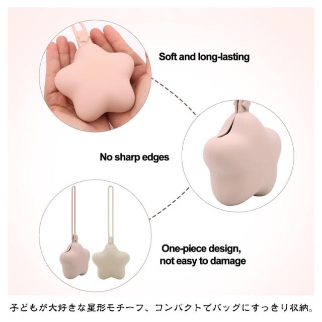 | 携帯用ケース【3個セット】 おしゃぶりもゴミもママの星便利ケース おすすめポイント ■お菓子の包み紙や使用済みティッシュをサッと収納!バッグ内を清潔に保つ、ママの携帯ごみ箱として大活躍。 ■子どもが大好きな星形モチーフ、コンパクトでバッグにすっきり収納。 ■安全のシリコン製で、柔らかく耐久性抜群・鋭いエッジなし、一体成型デザインで破損しにくい。 ■防水仕様なので、おしりふきや濡れたティッシュも安心して収納。ゴミ袋不要!そのまま中に入れるだけの手軽さ。 ポイント01 コンパクト&持ち運び便利 どこでも手軽に持ち運んで収納すっきり! ポイント02 シリコン素材 柔らかく耐久性のあるシリコン素材を採用しており、洗いやすく長持ちします。 ポイント03 入れやすいのに落ちにくい √両サイドをちょこんと押すだけ √おしゃぶりの出し入れも簡単! ポイント04 水洗い可能設計 小物を収納した後も、さっと水洗いできて清潔を保てます。煮沸消毒も可能なので、赤ちゃん用品としても安心です。 | |