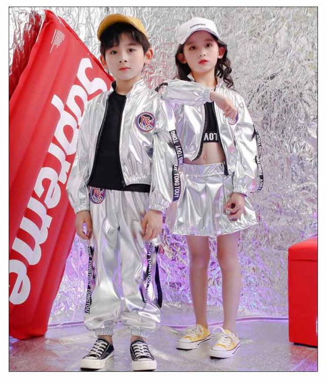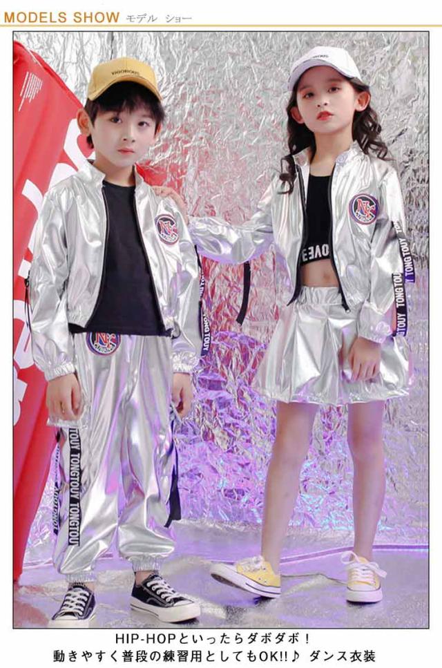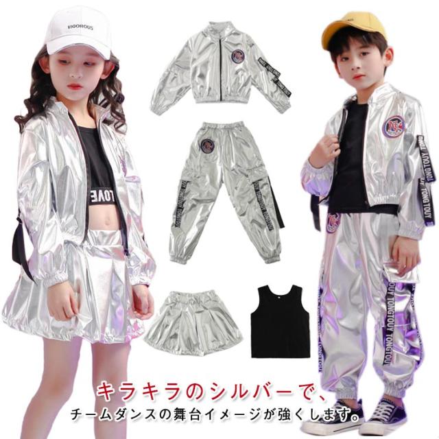 パンツ 長袖 シルバー ジャケット ヒップホップ ベスト ダンス スカート ダンス衣装 子ども キッズ メタリック 韓国 シルバー 女の子 男の子 ダンス 衣装 衣装 子供服 B系 ストリート 社交ダンスシンプル チアリーダー チアパン 舞台衣装 キラキラ 目立つ