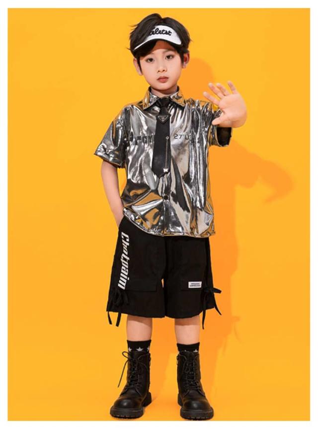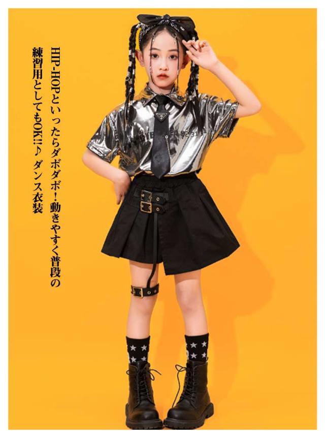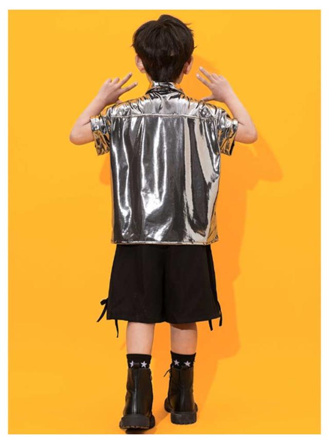 シルバー ヒップホップ 衣装 メタリック 半袖 子供 キッズ スカート 韓国 子ども ダンス衣装 子供服 ダンス 女の子 男の子 ダンス 衣装 k-pop B系 パンツ 舞台衣装 ストリート 社交ダンスシンプル チアリーダー チアパン シルバー キラキラ 目立つ