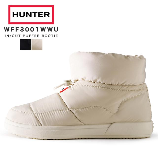ハンター HUNTER レディース ブーティ スリッパ ブラック クリーム ルームシューズ 部屋履き 外履き兼用 暖かい あったか 保温 防寒 防寒ブーツ もこもこ 中綿 フリース 裏起毛 軽量 履きやすい 脱ぎやすい 調節ゴム紐 快適 おしゃれ ブランド ブラック 黒 ホワイト 白 冬