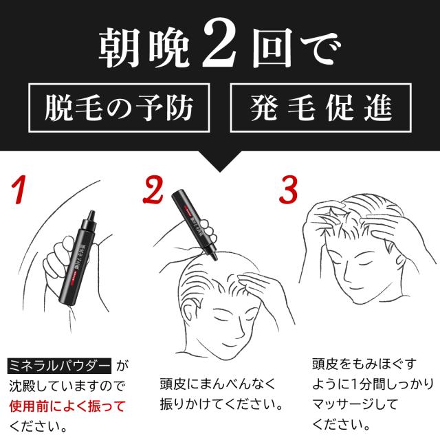 | 有効成分:センブリ抽出リキッド、トコフェロール酢酸エステル、β-グリチルレチン酸、ヒノキチオール その他の成分:エタノール、プロピレングリコール、濃グリセリン、ジエチレングリコールモノエチルエーテル、オレンジ油、イチョウエキス、ヨクイニンエキス、クワエキス、チンピエキス、オウゴンエキス、冬虫夏草エキス、カッコンエキス、シリル化処理無水ケイ酸、1,3-ブチレングリコール、精製水 |