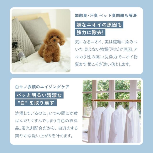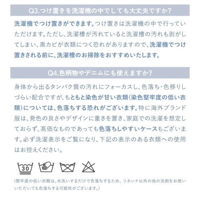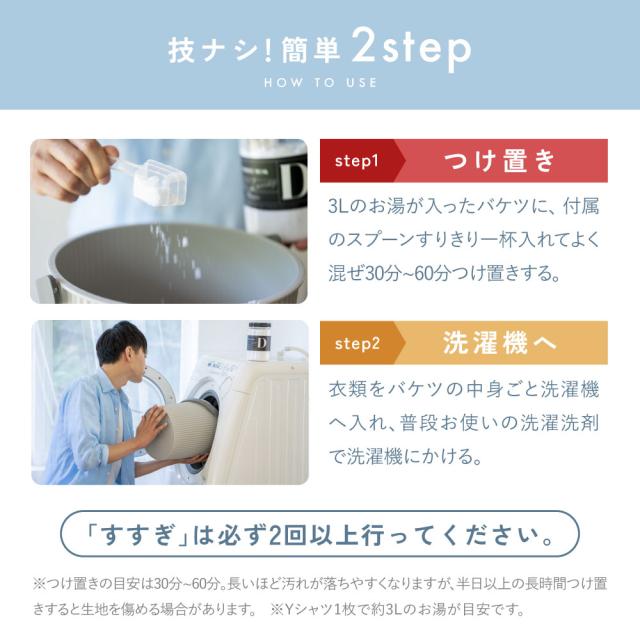 面倒なもみ洗いの時間を減らし、つけ置きすることで、衣類のニオイや汚れを落とします。
