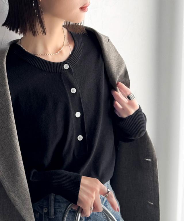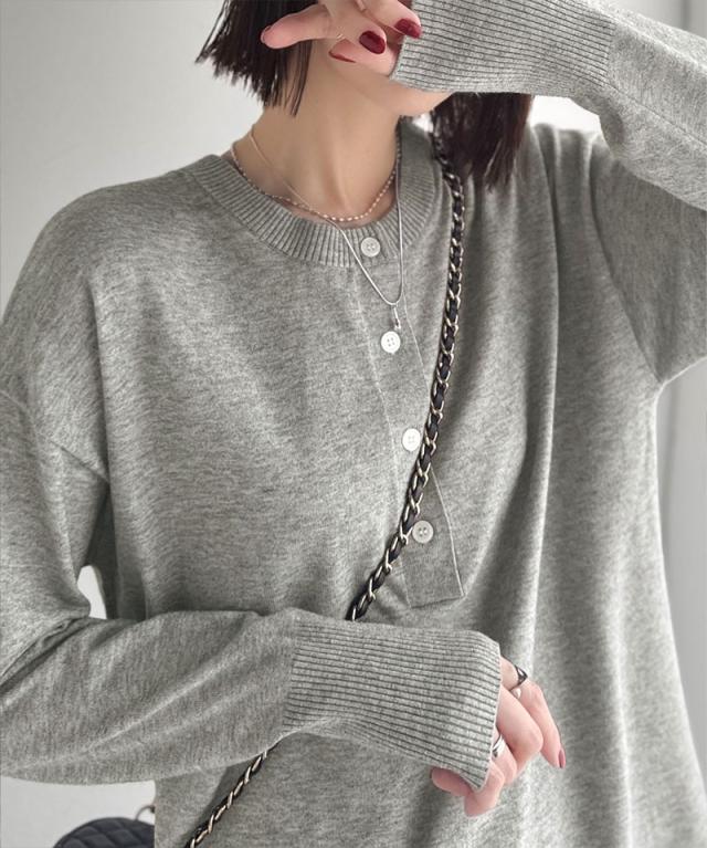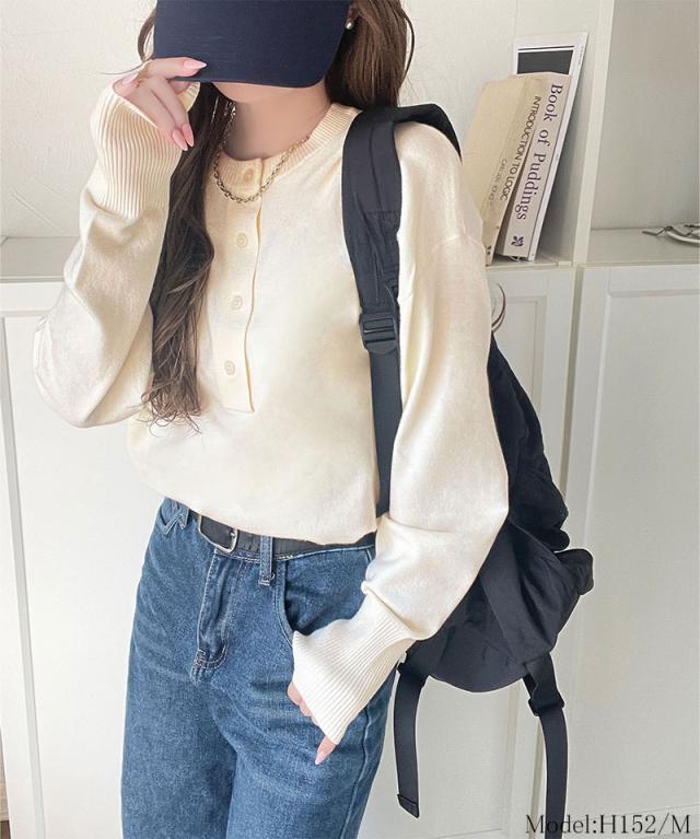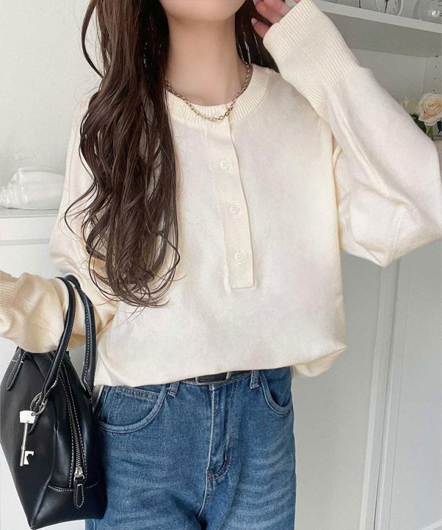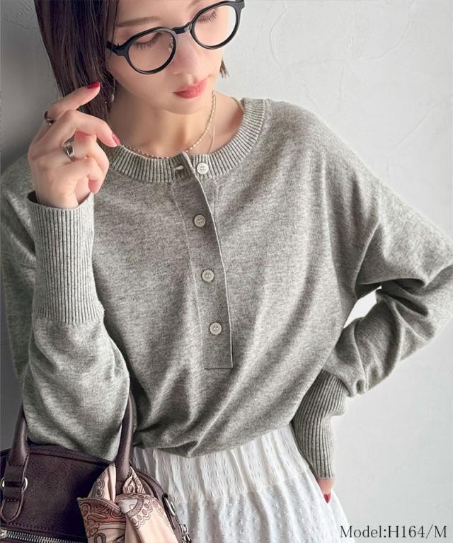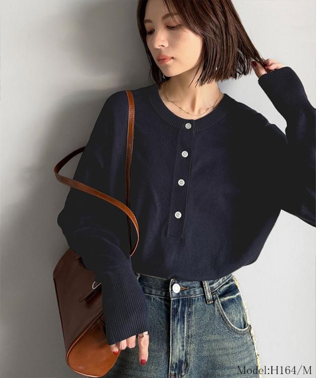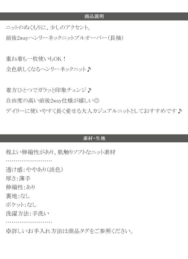 クラシカルエルフ秋新作トップス ニット レディース 前後 2way ヘンリーネック プルオーバー 長袖 デイリー 着回し レイヤードコーデ ロングシーズン 大きいサイズ 2025aw ce1020309