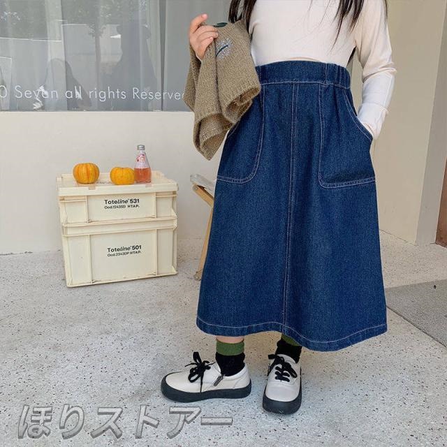 デニムスカート キッズ スカート ロングスカート ボトムス ロング丈 ハイウエスト 秋冬 シンプル ハイウエスト 大きいサイズ かわいい 110 120 130 140 150 160 送料無料