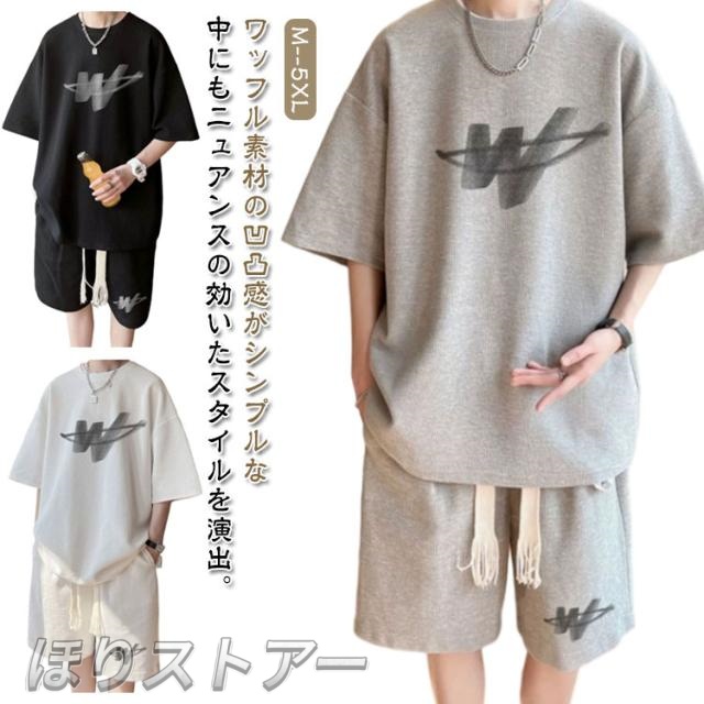 セットアップ メンズ サマースーツ 上下セット 半袖Tシャツ ショーツ ショートパンツ ハーフパンツ ワッフル編み カジュアル ガウチョパンツ 送料無料 ワイドパンツ ゆったり 通気性 スポーツウェア ルームウェア お兄系 パジャマ 春 夏用 ランニング ウォーキング 散歩