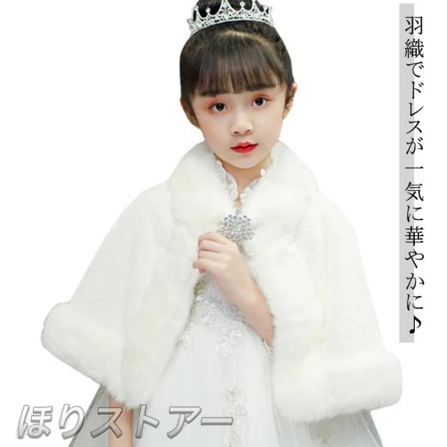 | 羽織でドレスが一気に華やかに♪ あったか、ふわっふわのゴージャスファーマント。 優しい素材でお子様の肌にも安心の作りです。 柔らかく暖かいふわふわのファー素材の子供用ケープで、 身ごろは柔らかな裏生地付きで脱着も簡単。 ノースリーブのドレスの防寒用としてはもちろん 寒い日の結婚式やクリスマスパーティー、誕生日会のお呼ばれに大活躍♪ | |