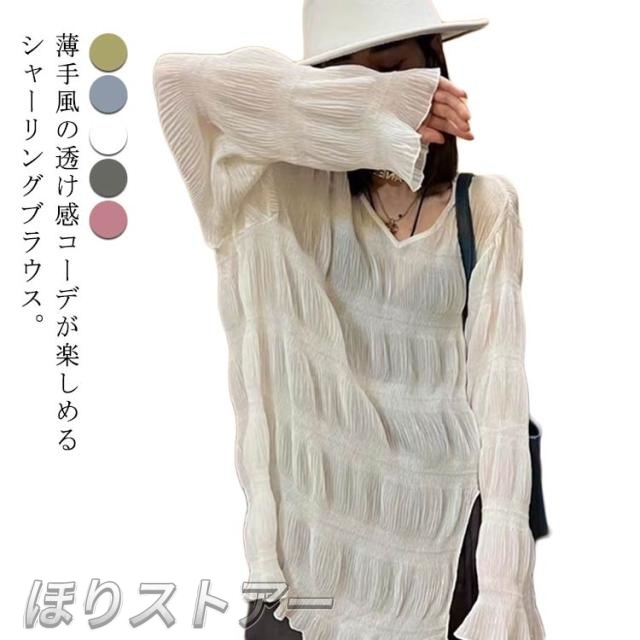 シアー レディース 重ね着 シャーリング インナー クルーネック トップス シャーリングブラウス フリル シャーリングブラウス シフォン 無地 きれいめ 薄手 シャツ 透け シフォンブラウス 体型カバー インナー オフィスカジュアル 春 夏 秋