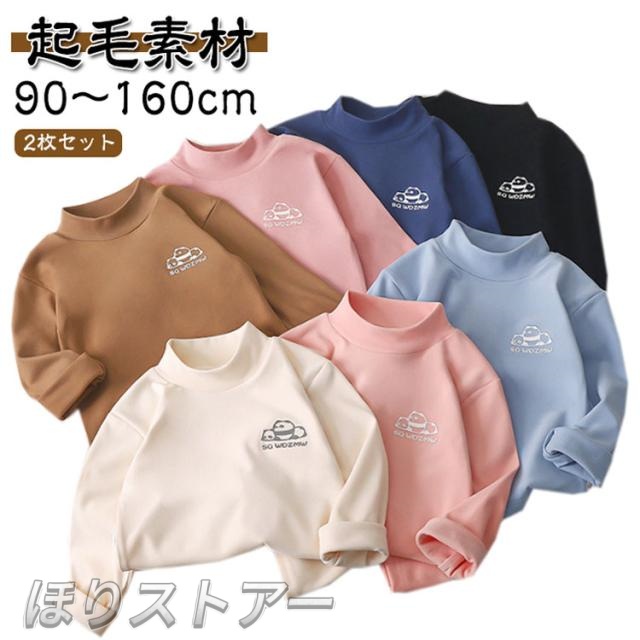 2枚セット!子ども服 あったかインナー ハイネック トップス 男の子 女の子 カットソー キッズ インナー 暖かい トレーナー 起毛素材 保温性 ジュニア ベビー服 子供 90 100 110 120 130 140 150 160cm 通園 通学 防寒 肌着 秋冬 アンダーシャツ