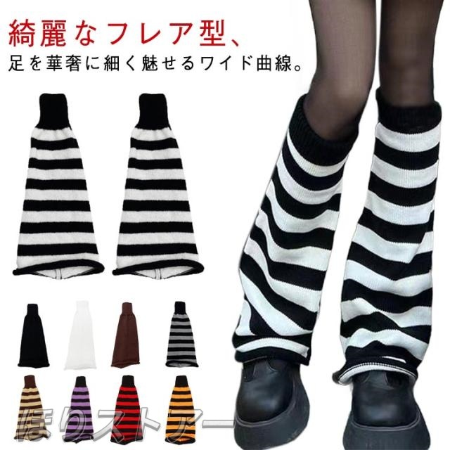 ワイドレッグウォーマー レッグカバー レディース ロング フレア 脚長効果 ルーズソックス ブーツカット 美脚 ギャル 防寒 保温 足首 暖かい ハイソックス スクール ルーズ靴下 無地 ボーダー柄 可愛い オシャレ ルーズソックス 見?せ 靴下 ソックス