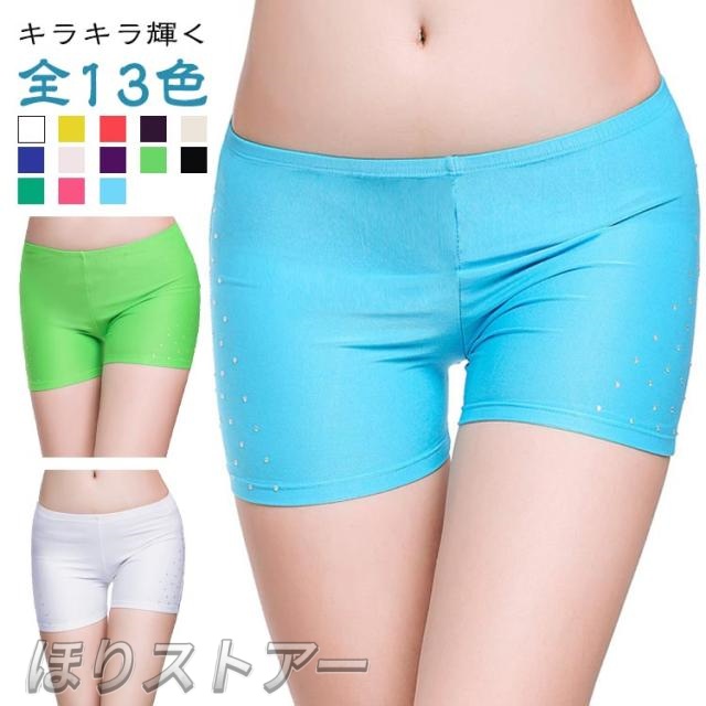 ショートパンツ 透け防止 ショート丈 キラキラ インナー インナーパンツ 3分丈 ベリーダンス 見せパンツ スパッツ レギンス レディース ラインストーン飾り付き ショートレギンス アンダーウェア カバーパンツ ダンスインナー 社交ダンス ストレッチ