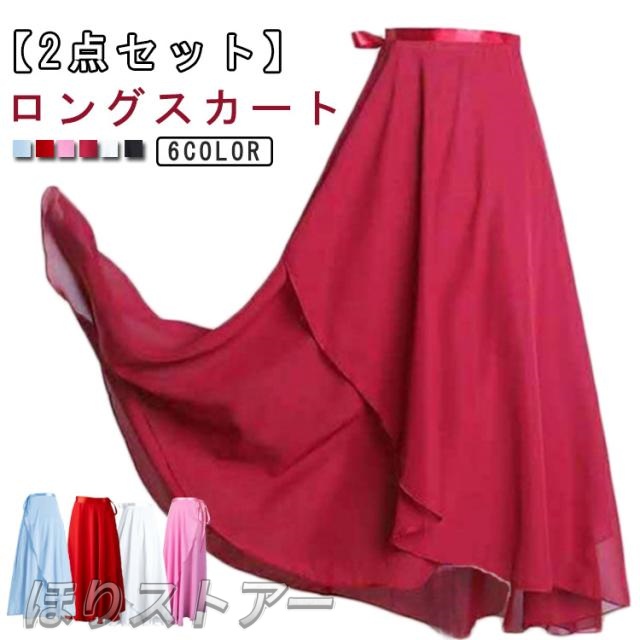【2点セット】バレエ スカート ロング 大人 透けない ロングスカート レディース ダンス フレアスカート ジュニア バレエスカート バレエ用シフォンスカート レッスン着 練習着 発表会 舞台衣装 ダンススカート おしゃれ バレエ用品