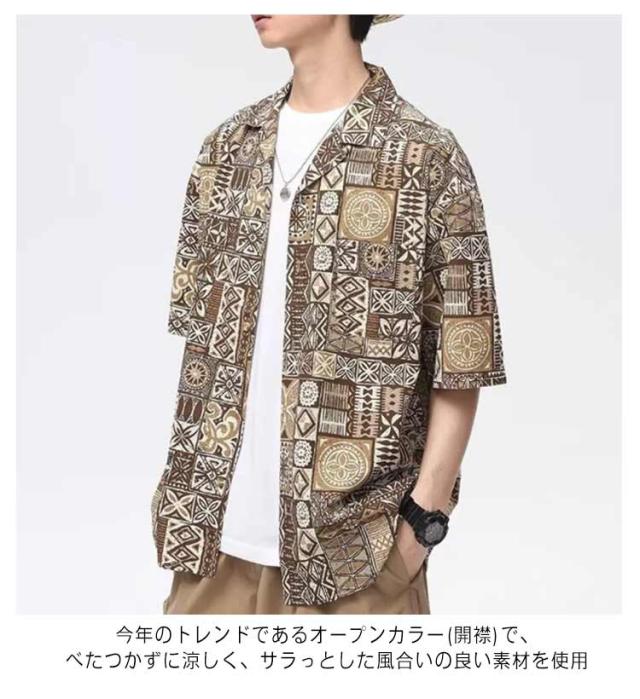 半袖シャツ カジュアルシャツ メンズ 五分袖 シャツ アロハシャツ 新生活 ビジネス 紳士服 開襟シャツ 柄シャツ 和柄 カジュアルシャツ ハワイアン 夏 夏服 オープンカラー サーフ系 通勤通学 アメカジ タイト ぴったり 切り替え 送料無料