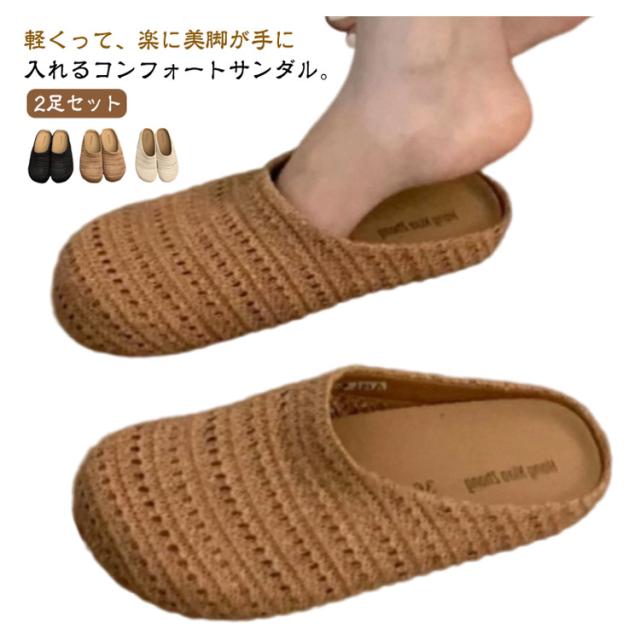 レディース 履きやすい 編み上げ 2足セット フラットサンダル サボサンダル フラットサンダル ベトナムサンダル お出掛け 歩きやすい 疲れないシューズ 遊び 夏 春 秋 メッシュサンダル 買い物