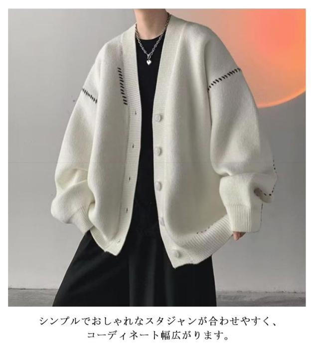 | 洒落で保温にバツグンのニットカーディガン♪ 風合い豊かな質感が上品で男の色気を演出してくれます。 配色に優れたニット、大人っぽい印象を与えてくれる。 どんなスタイリングにも馴染みやすく、大人の抜けた着こなしを叶う。 シンプルでおしゃれなスタジャンが合わせやすく、コーディネート幅広がります。 | |