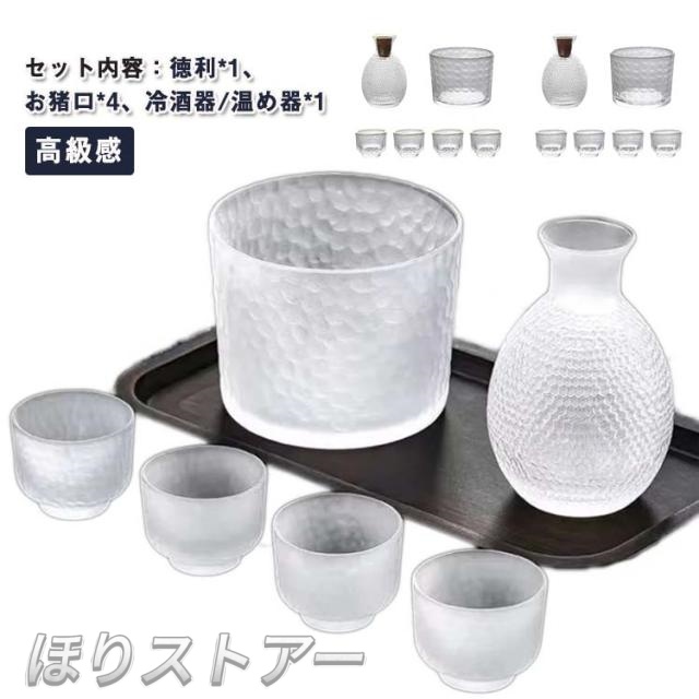 おちょこ 徳利 セット 6点セット ガラス 半透明 クリア 酒器セット 酒燗器 熱燗器 お猪口 ぐい呑み とっくり 熱燗 冷酒器 おしゃれ 高級感 酒器 日本酒 和酒 焼酎 冷酒 燗酒 温め 温め器 保温 保冷 誕生日 和風 父の日 敬老の日 プレゼント ギフト 送料無料