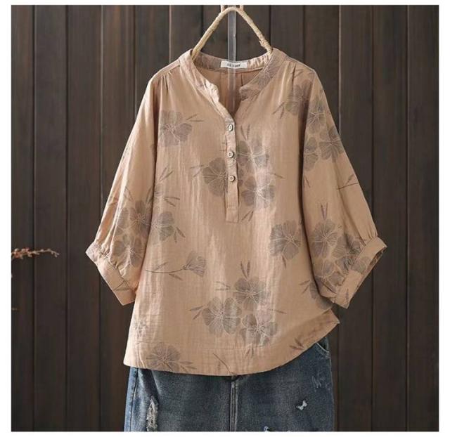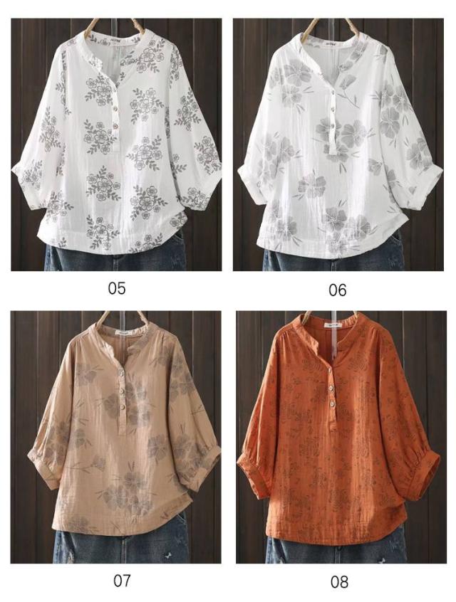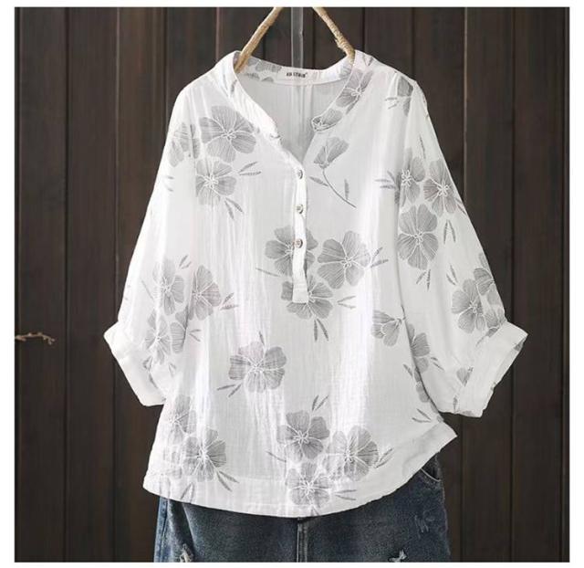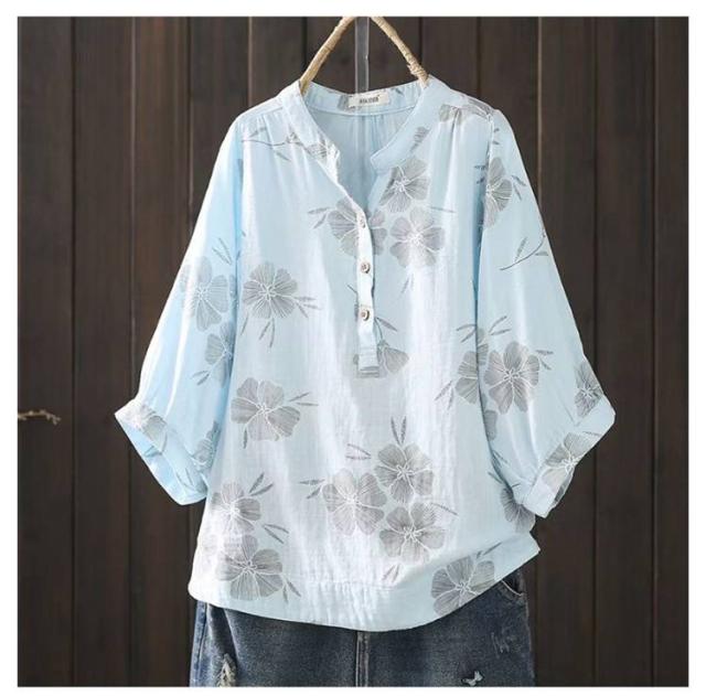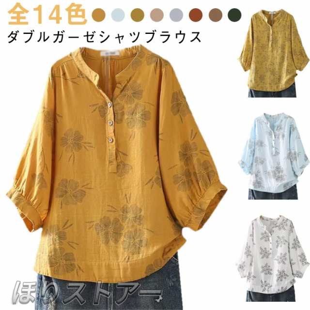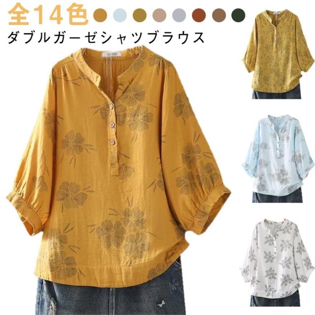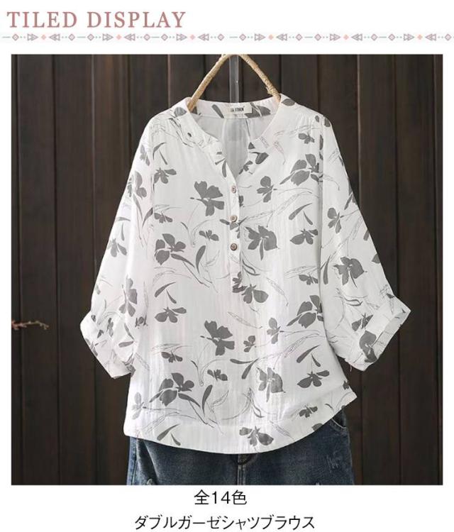 ガーゼ シャツ 2重ガーゼ シャツブラウス Vネック レディース 半袖 トップス 春 夏 ガーゼシャツ Vネックシャツ 羽織り 大人 花柄シャツ カジュアル ナチュラル ダブルガーゼ 体型カバー ゆったり 綿 花柄 通勤 30代 50代 40代