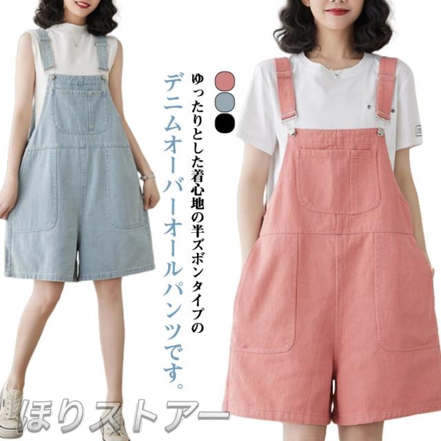 レディース サロペット パンツ デニムサロペット ハーフパンツ ショートパンツ 膝上 ゆったり ワイドパンツ かわいい 短パン 夏 夏パンツ 女子 女性 女の子 お洒落 オシャレ