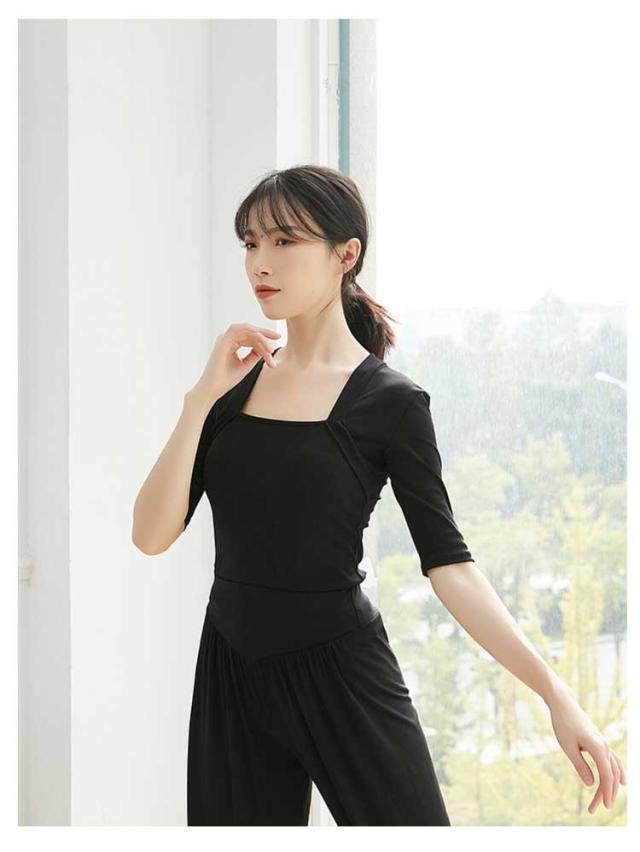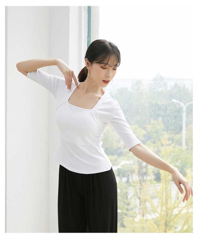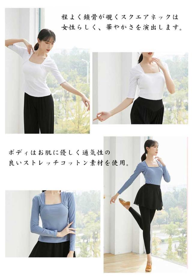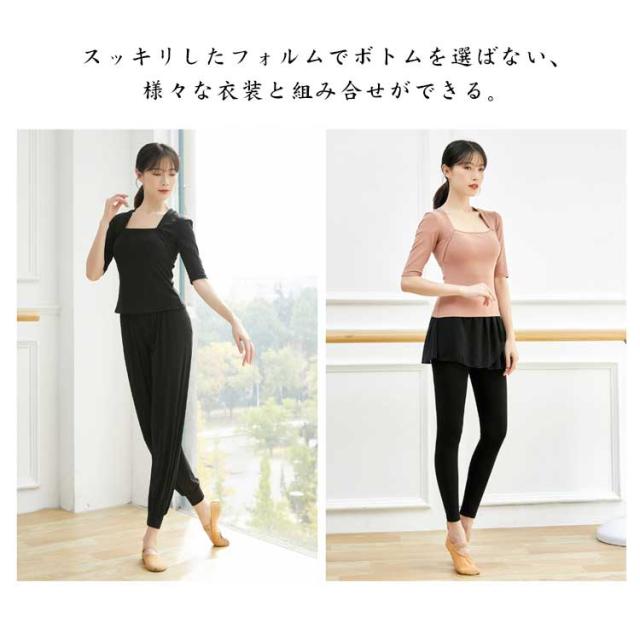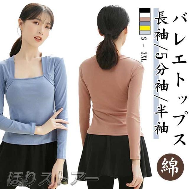 バレエ トップス レディース 長袖/5分袖/半袖 Tシャツ 綿 ダンス 社交ダンス 練習着 バレエ レッスン ダンス衣装 ステージ衣装 ストレッチ スクエアネック 防寒 寒さ対策 フィットネス ジム スポーツ ヨガウェア 新体操 古典舞踊 無地 春 夏 送料無料