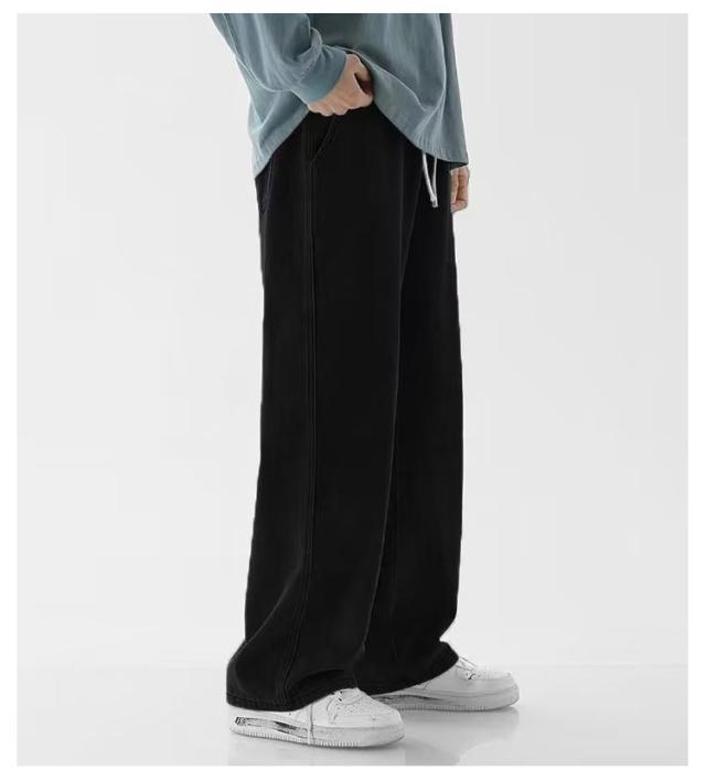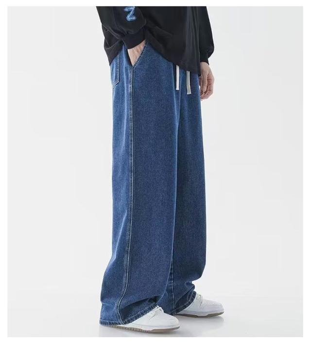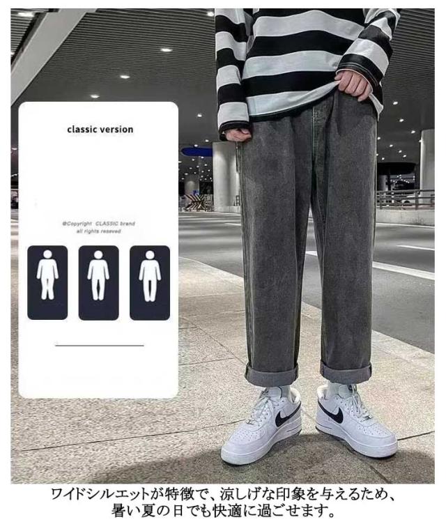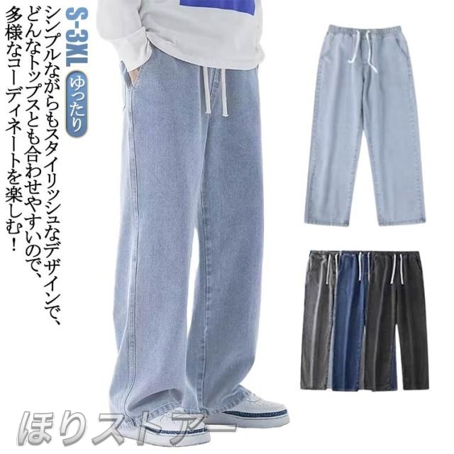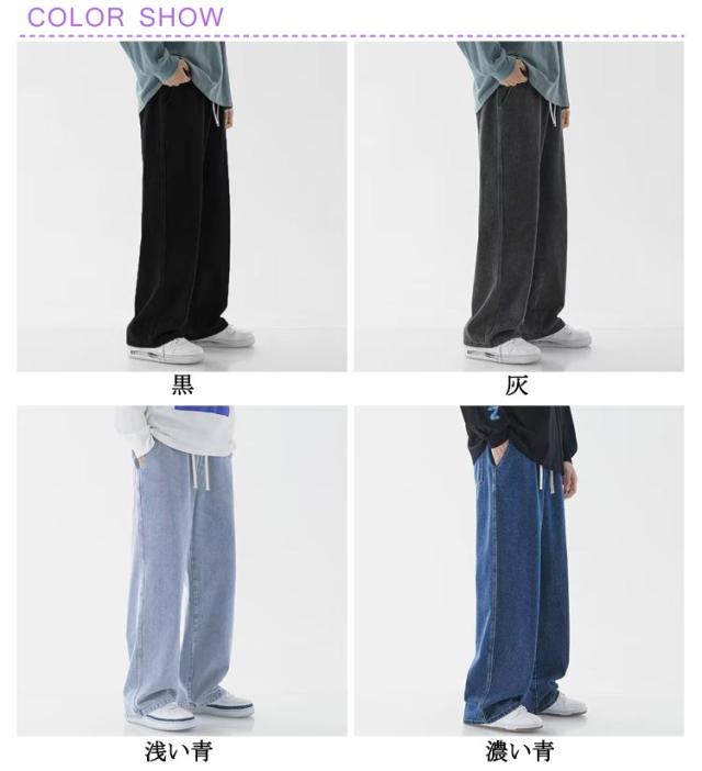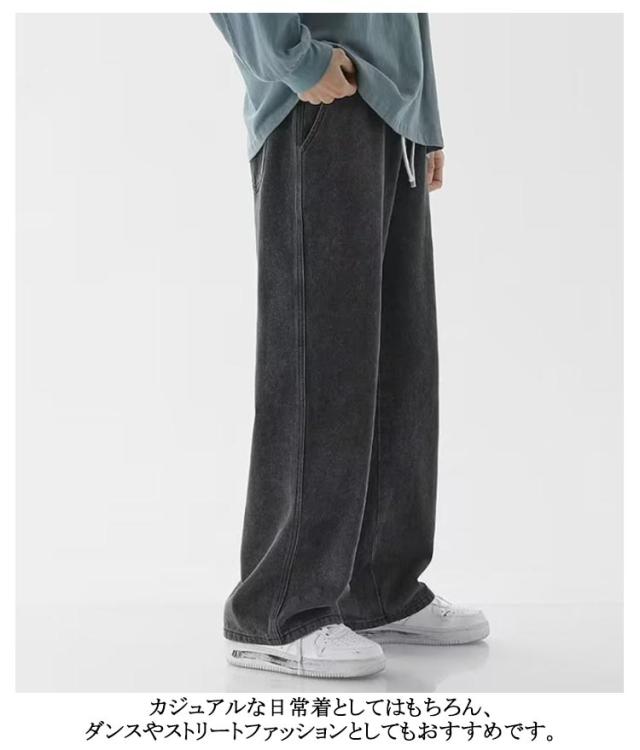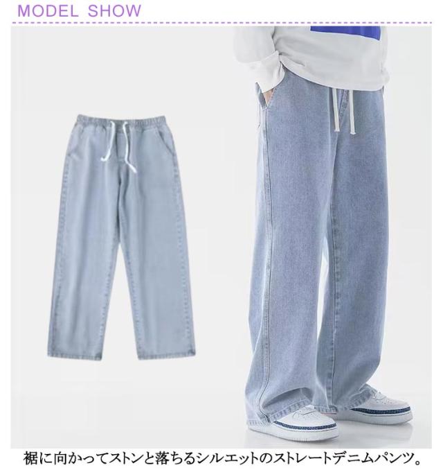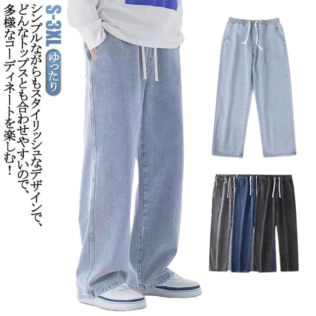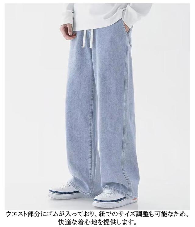 ワイドパンツ リラックス 涼しい ジーンズ 夏用 ゆったり 長ズボン デニムパンツ 無地 Gパン デニム ストレートパンツ ジーパン ロングパンツ カジュアル ダンス ストリート ボトムス パンツ メンズ ウエストゴム 調整紐 大きいサイズ 春 夏 秋