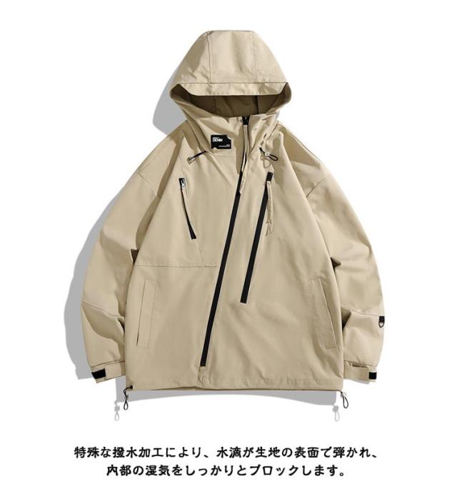| 防風・はっ水と様々な機能を搭載している多機能ジャケット。 ハイキングやキャンプ、日常使いにも対応できるデザインは、どんなコーディネートにもびったりマッチします。耐久性に優れた素材を使用しており、厳しい環境下でも安心してご利用いただけます。 特殊な撥水加工により、水滴が生地の表面で弾かれ、 内部の湿気をしっかりとブロックします。 通気性に優れており、蒸れにくく、長時間の着用でも爽やさをキープします。高い機能性とトレンドのデザインをミックスしたこだわりの1着です。 フード付きスタンドカラーのデザインで、風を防ぎ暖かさを保ち、首のラインを完璧 に引き立てます。 裾口の調節可能。 男性はもちろん女性のオーバーサイズシルエットのスタイリングにもおすすめです。 ジョギング、登山、キャンプなどに活躍してくれるウィンドブレーカーです。 | |