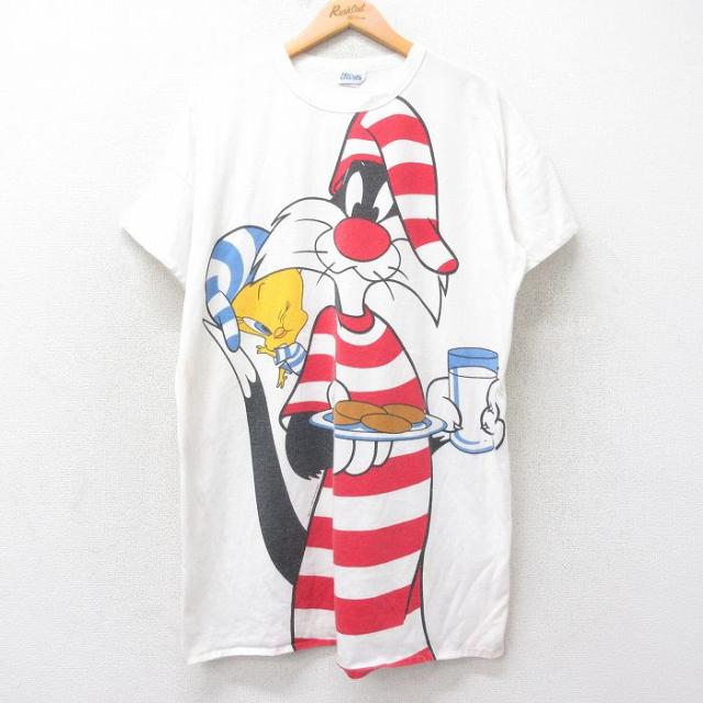 古着 半袖 Tシャツ ワンピース レディース 90年代 90s ルーニーテューンズ LOONEY TUNES シルベスター トゥイーティー 大きい 中古 古着