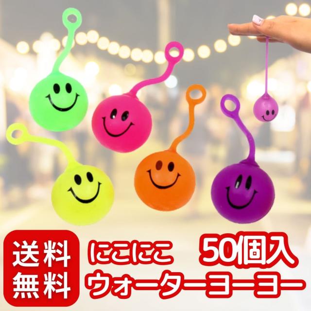 【 嬉しい 縁日 用品 】ニコニコヨーヨー50個 5色アソート ガチャガチャ 景品〔 お祭り/イベント/子供会/露店/縁日 〕水に浮く ミニサイズ