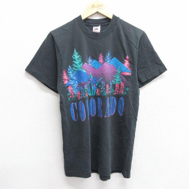 古着 半袖 ビンテージ Tシャツ メンズ 90年代 90s コートランド フットボール コットン クルーネック 黒 ブラック Mサイズ 中 中古 古着