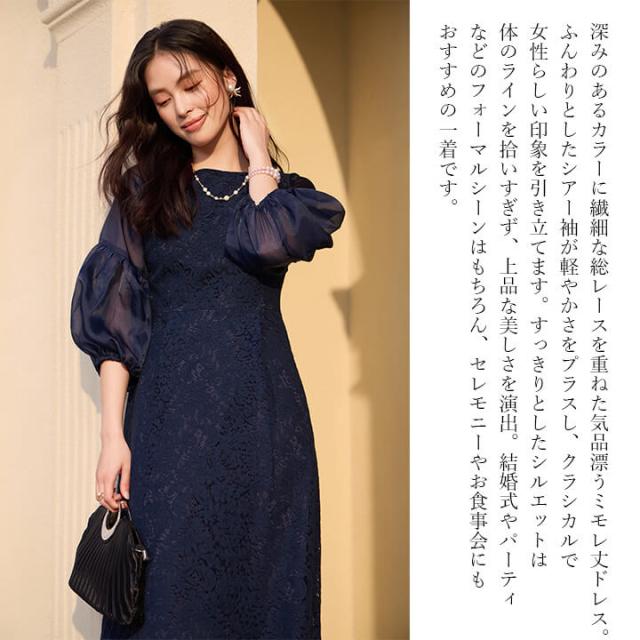■取扱商品の特徴: ロングドレス ミモレ丈ドレス パーティードレス レディース ドレス セレモニードレス 総レース シアー袖 ラウンドネック Aライン ミモレ丈 透け感 5分袖 七分袖 結婚式 謝恩会 発表会 食事会 可愛い きれいめ すっきり 着心地 ゆったり エレガント クラシカル 上品 フォーマル 大人 抜け感 カジュアル オールシーズン 大きいサイズ 二次会 演奏会 同窓会 セレモニー 袖あり ブラック ネイビー 黒 紺 20代 30代 40代 50代 60代 M L XL 9号 11号 13号 yj188652
