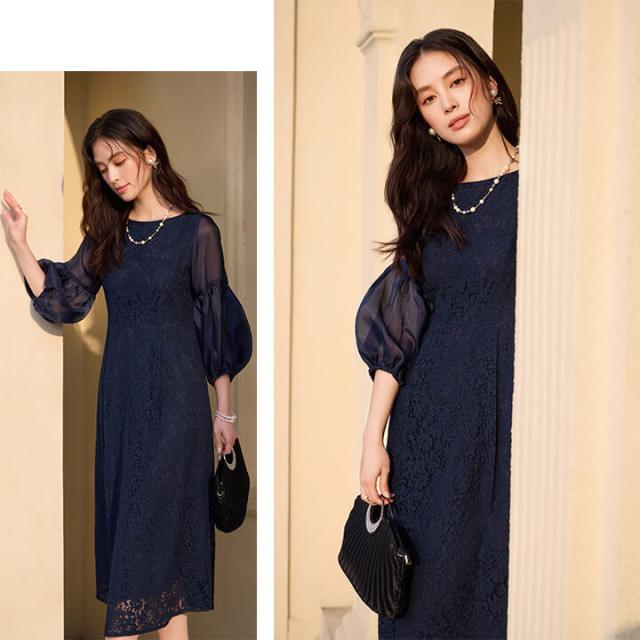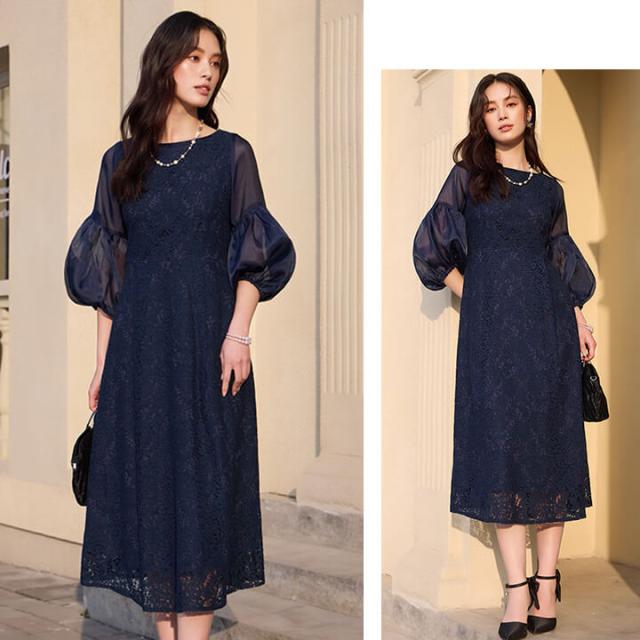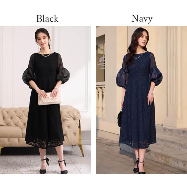 ロングドレス ミモレ丈ドレス パーティードレス レディース ドレス セレモニードレス 総レース シアー袖 ラウンドネック Aライン ミモレ丈 透け感 5分袖 七分袖 結婚式 謝恩会 発表会 食事会 可愛い きれいめ すっきり 着心地 ゆったり エレガント クラシカル 上品 フォーマル 大人 抜け感 カジュアル オールシーズン 大きいサイズ 二次会 演奏会 同窓会 セレモニー 袖あり ブラック ネイビー 黒 紺 20代 30代 40代 50代 60代 M L XL 9号 11号 13号 yj188652