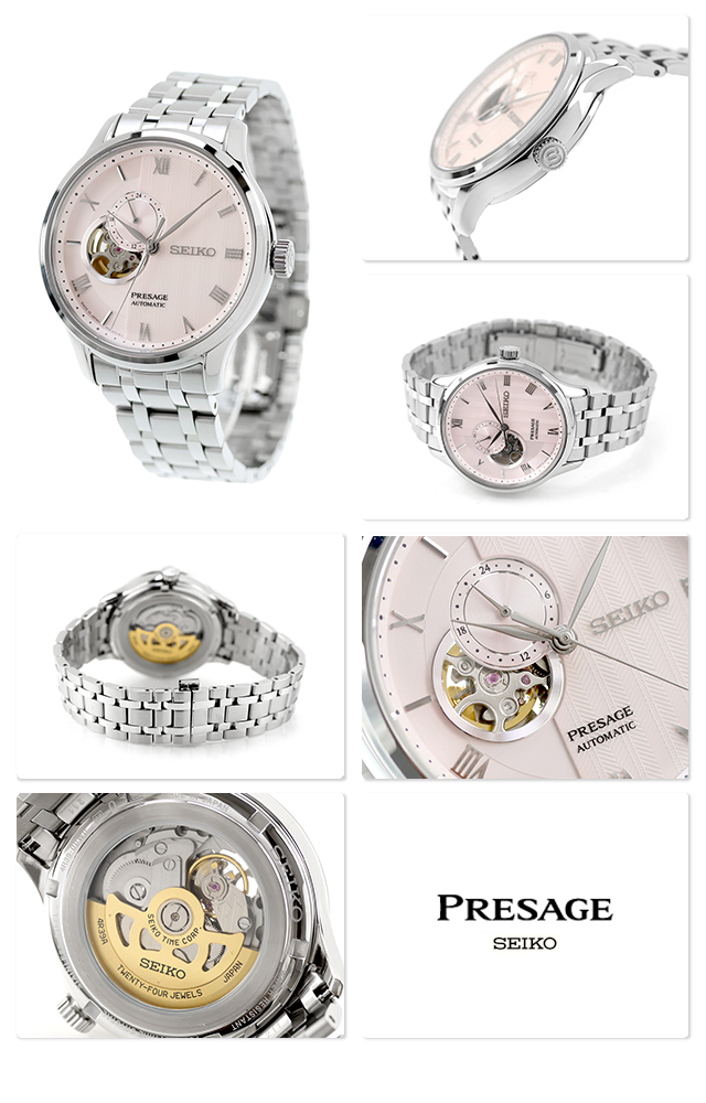 セイコー プレザージュ ジャパニーズガーデン 自動巻き 腕時計 ブランド メンズ オープンハート SEIKO PRESAGE SARY261 ピンク 日本製 高級 おしゃれ 防水 プレゼント 男性 実用的