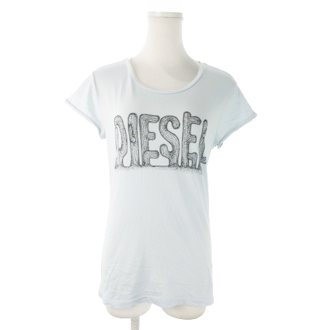 【中古】ディーゼル DIESEL 半袖Tシャツ ラウンドネック コットン プリント サボテン ロゴ 小さいサイズ XS 青