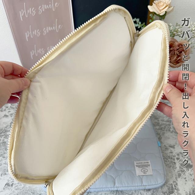 厚みのあるふわふわ素材で守る保護ケース。a4サイズも収納ok◎キルティングの柔らかい手触りがやみつきに