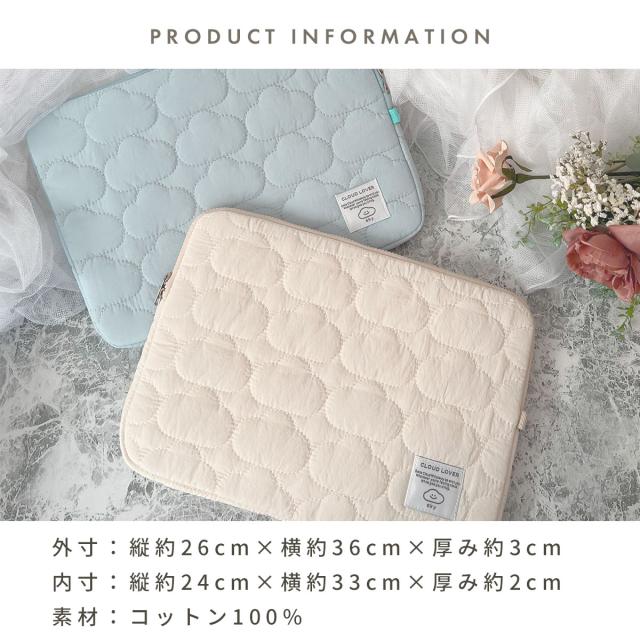 ノートパソコンケース 14インチ 13インチ おしゃれ 女性 かわいい 13.3インチ ノートPCケース パソコンケース 横型 ノートパソコン入れ ノートパソコンカバー・ケース 収納 a4 小学生 高校生 保護 macbook モバイル 持ち運び カバー キルト キルティング 雲