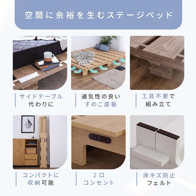 ステージベッド セミダブル ベッド セミダブル ベッドフレーム ステージベッド コンセント付 コンセント SD すのこ フロアベッド ローベッド 送料無料