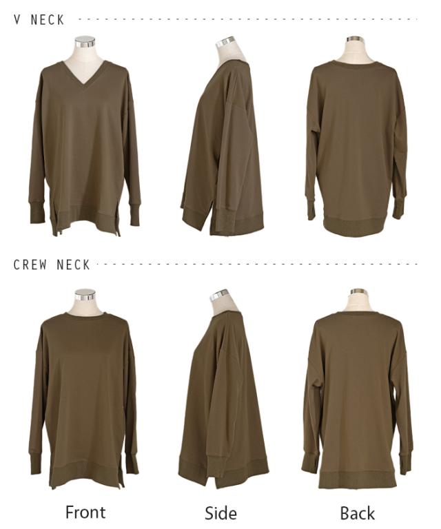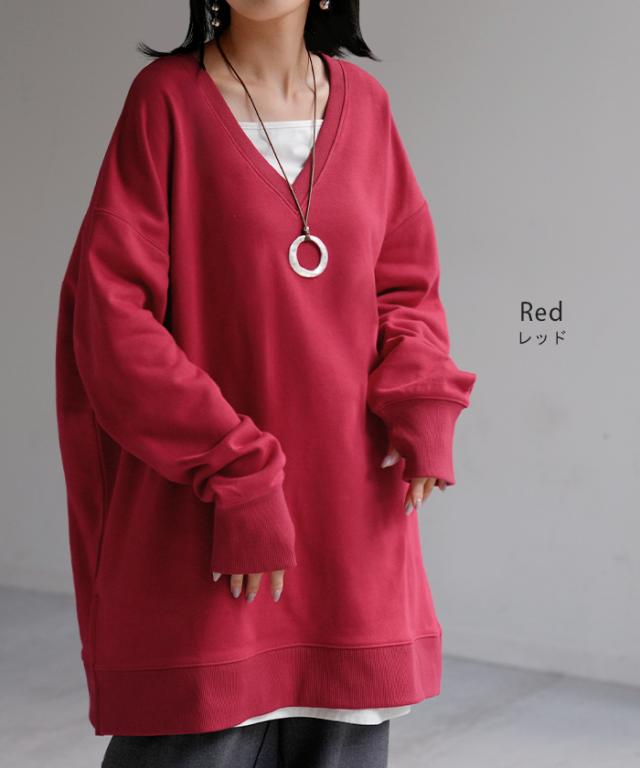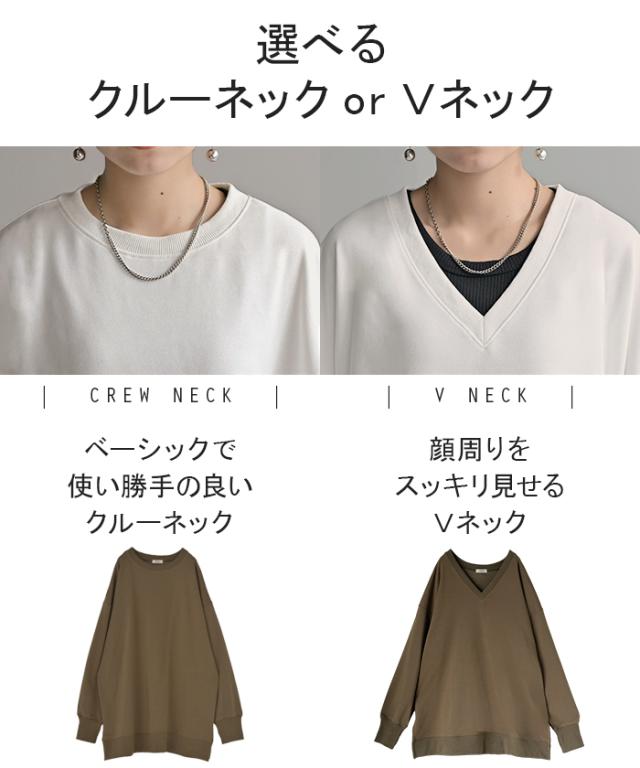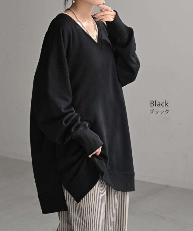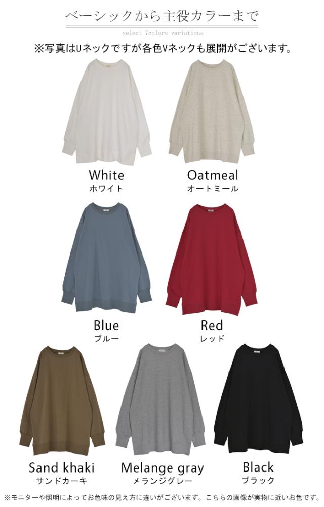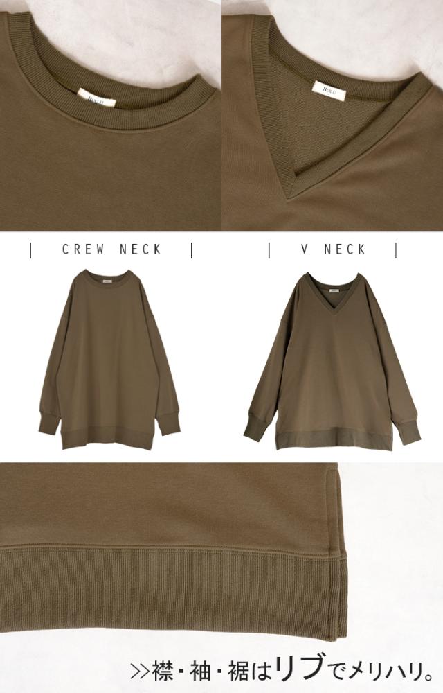 2025AW新作 スウェット 選べる クルーネック Vネック 一部3月中旬入荷 チュニック レディース トップス ロング トレーナー オーバー プルオーバー 無地 長袖 ドルマン ボリュームスリーブ オーバーサイズ ゆったり 体型カバー 大きいサイズ お尻が隠れる 黒 秋 冬 HUG.U