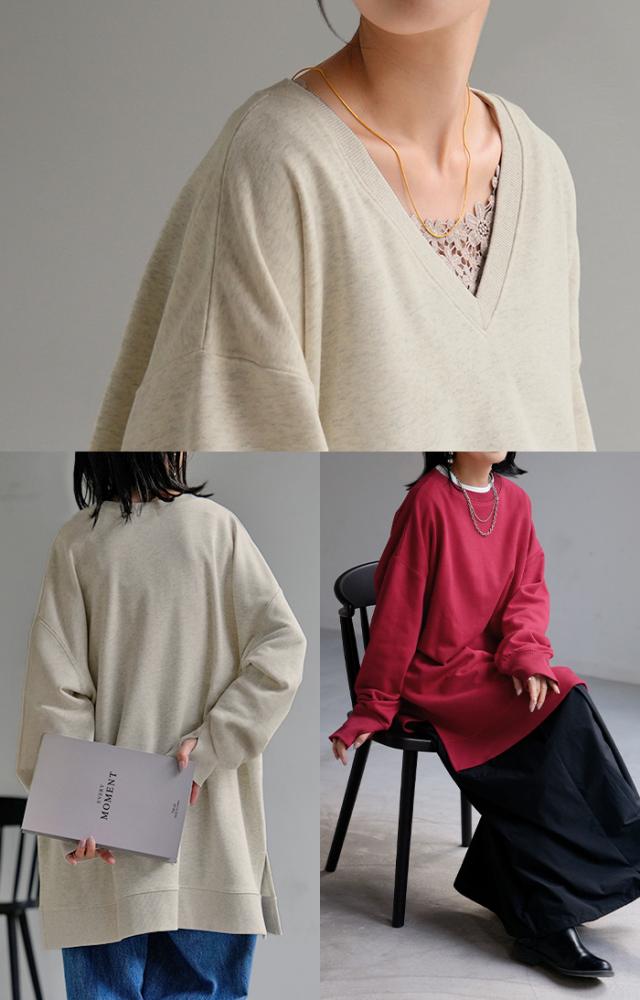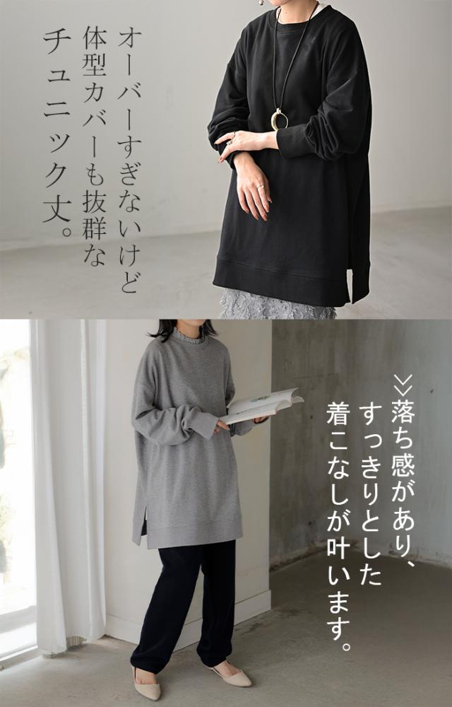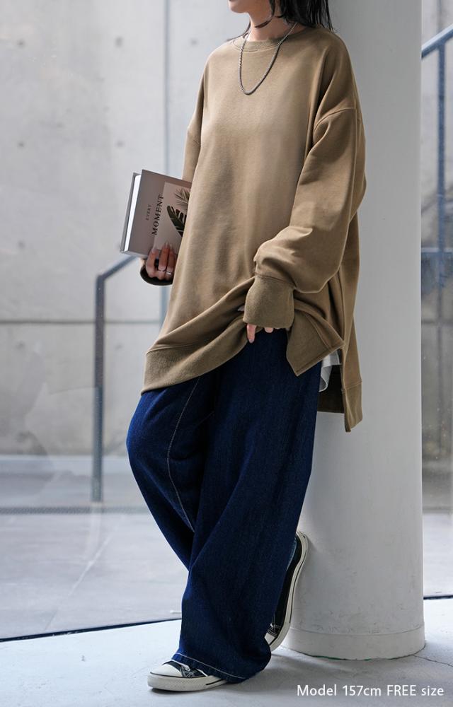 ルーズシルエットでゆったり着れるチュニック丈のスウェットトップスです。